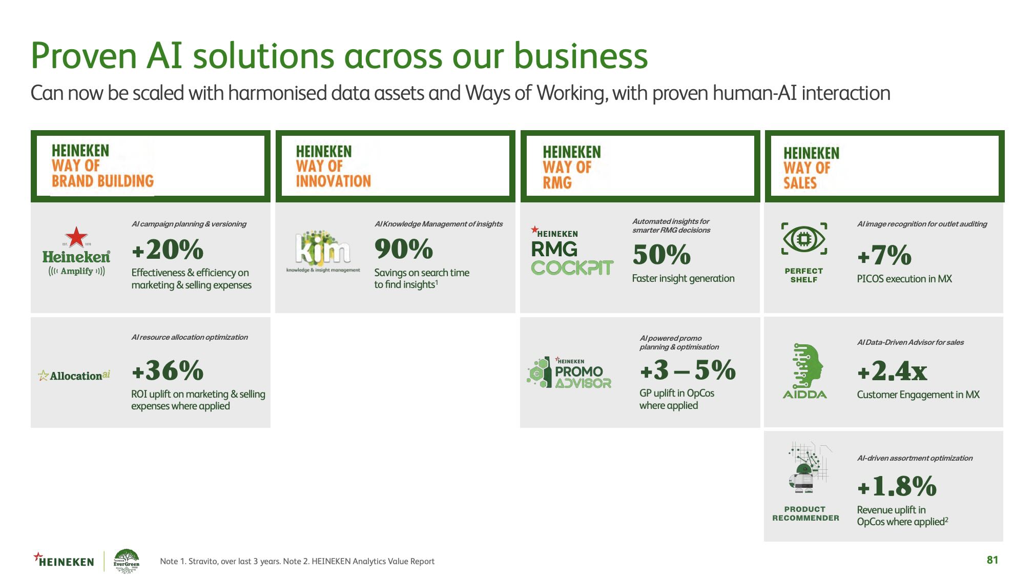 Grazie al suo potenziale, Heineken intende ottenere, a fronte di forti investimenti in marketing e vendite superiori al 10% dei ricavi netti, una crescita del 20% di efficacia ed efficienza su tutti gli investimenti pubblicitari, che si aggirano sui 3 miliardi di dollari a livello globale.