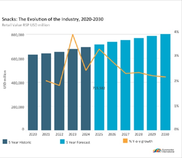 L’indulgenza accessibile sarà un fattore chiave nelle scelte di snack nei prossimi anni, in un settore che crescerà a 715,5 miliardi $