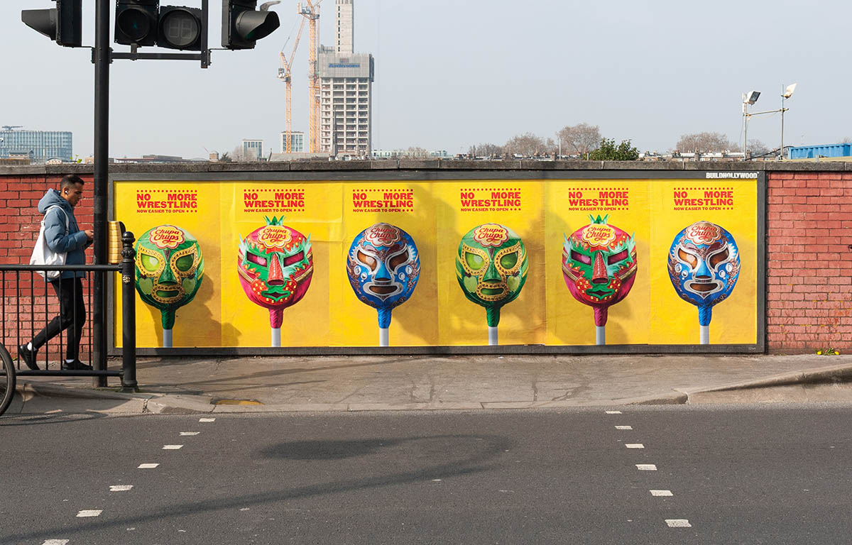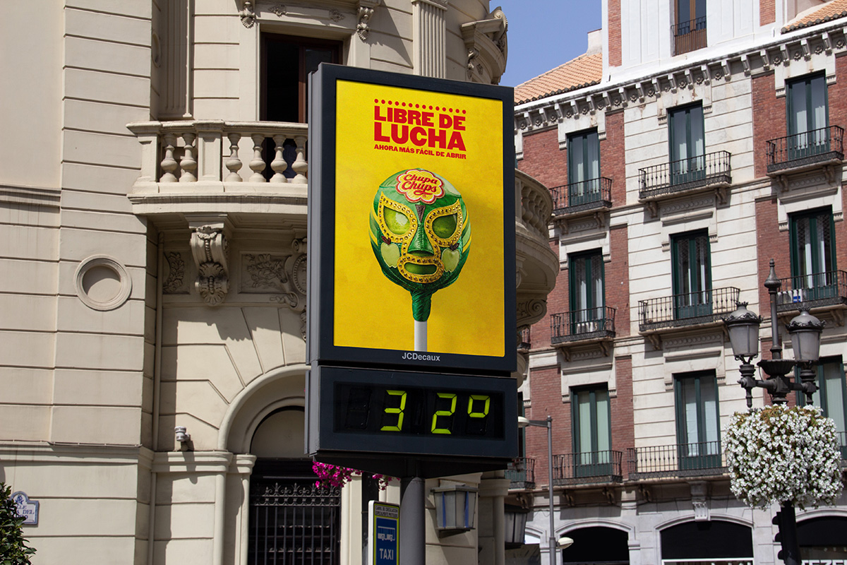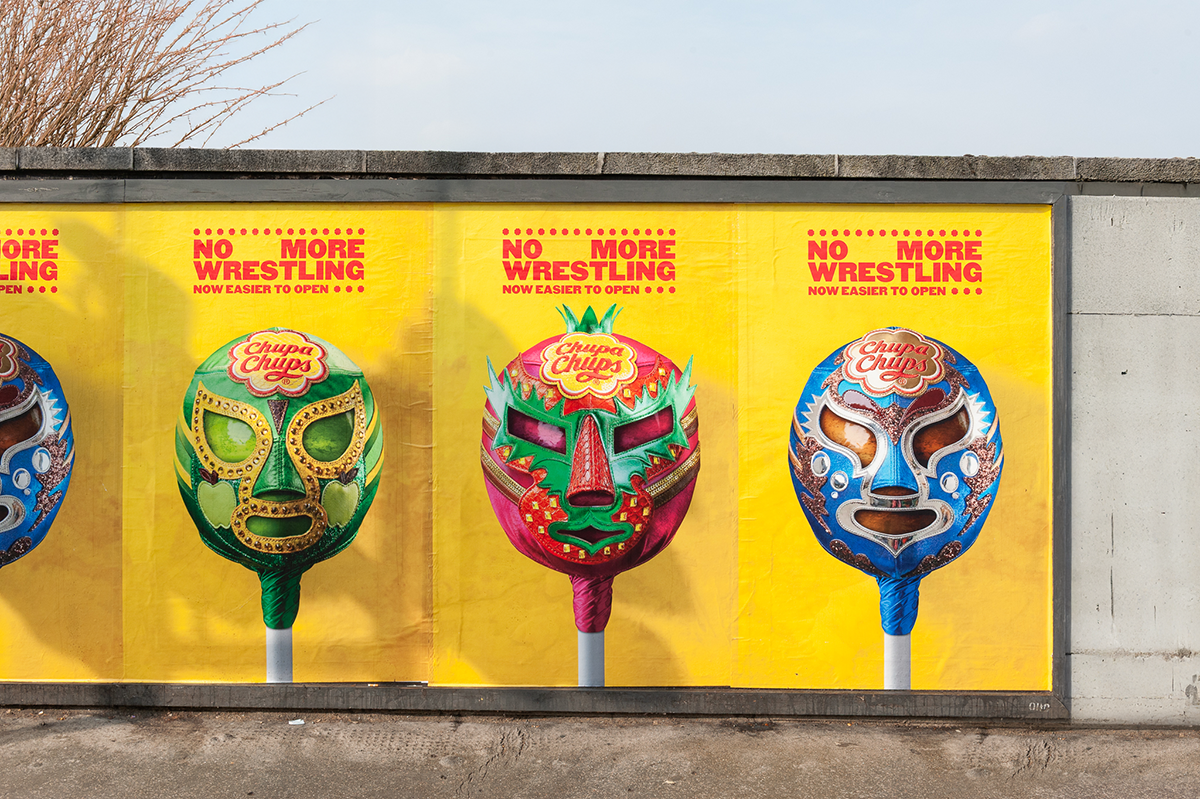 La campagna si intitola “No More Wrestling” e ha visto la collaborazione con il famoso designer messicano di maschere Arturo Bucio, che ha trasformato le confezioni in suggestive maschere da Lucha Libre. Abbinata a uno slogan ispirato ai classici poster di wrestling, la campagna drammatizzare la difficoltà che si provava ad aprire un lollipop di Chupa Chups.