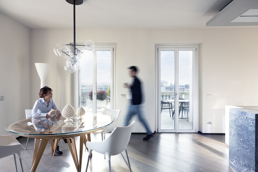 Lo spot riprende i protagonisti delle precedenti campagne – la coppia di giovani affacciati alla finestra Prolux Evolution – diventati negli anni un elemento riconoscibile della comunicazione Oknoplast.