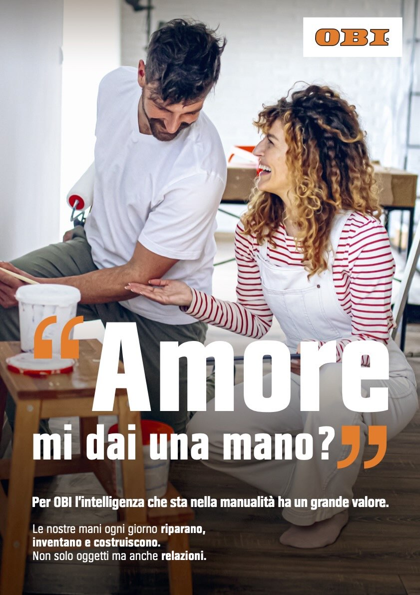 In parallelo, a supporto del progetto strategico ‘Intelligenza Manuale’ ideato da Havas PR, Dlvbbdo svilupperà la campagna ‘Mi dai una mano?’, una multisoggetto che ha preso il via il 1° ottobre all’interno dei negozi e verrà veicolata tramite media locali e i canali social di OBI Italia, arricchendosi con altri soggetti nel corso dei prossimi mesi.