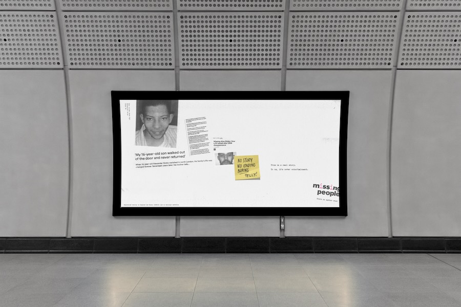 Oltre al film, BBH ha creato un cofanetto ispirato all’intrattenimento crime, che vanta di contenere ‘i cinque casi più importanti che non vedrete in TV’, e lo ha inviato a influencer e giornalisti. Aprendolo, i destinatari scoprono che non contiene alcun che per ribadire che tanti casi di persone scomparse non arrivano alla ribalta dei media, troppo concentrati sulla ricerca della storia perfetta per ricordare la banalità di tante storie quotidiane.