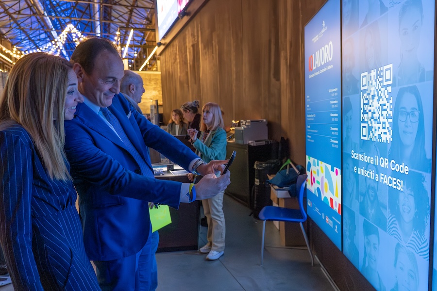 La comunicazione è stata articolata su materiali istituzionali, contenuti digitali per sito e social, asset grafici e video, newsletter oltre alle attività di influencer marketing mirate a intercettare il pubblico più giovane. Tra le novità il Video CV Booth, una cabina interattiva con teleprompter che guida i visitatori nella registrazione del proprio video curriculum, e l’installazione digitale Faces, che ha trasformato volti, parole ed emozioni dei partecipanti in un mosaico collettivo.