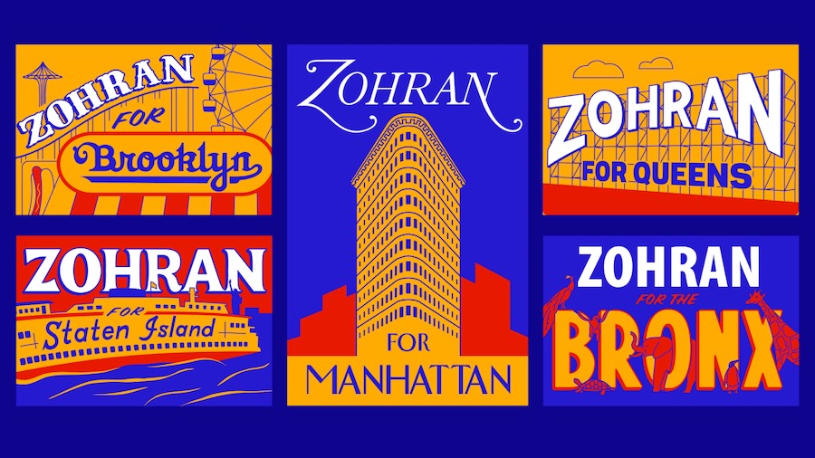Un’identità visiva flessibile, riconoscibile e iper locale per Zohran Mamdani, ideata dall’agenzia Forge
