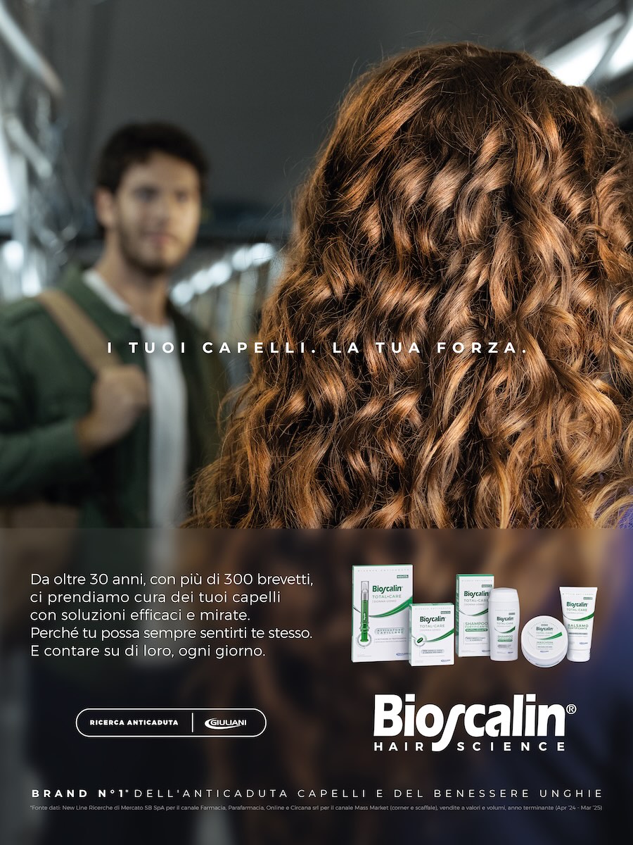 Cambia anche la promessa: lo storico “Belli, sani, forti” lascia spazio a “Bioscalin. I tuoi capelli, la tua forza”, un messaggio chiaro che abbandona la narrativa della “performance estetica” per mettere al centro i bisogni reali delle persone.
