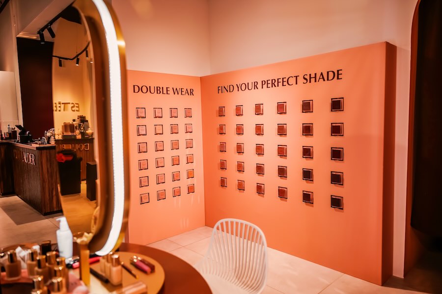 La personalizzazione ha fatto da filo conduttore, esplicitata attraverso diversi elementi. Tra questi, uno Shade Wall interattivo con tutte le nuance raffigurate su card estraibili e specchi con frasi social-friendly, per verificare il proprio match in autonomia, anche senza prenotazione. Non sono mancate le photo opportunity, con un photo-booth digitale per la stampa istantanea con sfondo brandizzato Estée Lauder e la riproduzione XXL del fondotinta Double Wear.