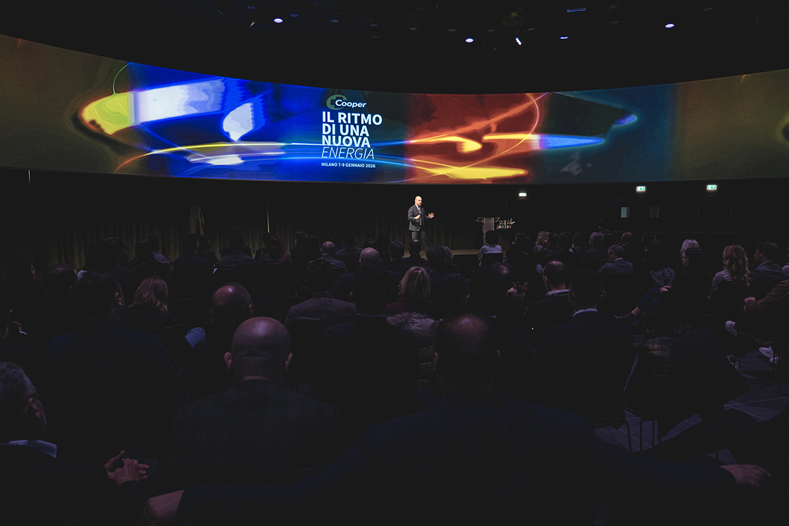 QuestionMark ha inoltre realizzato il video di apertura della convention, sfruttando il sistema di proiezione continua a 360° della Sala Scorpio. Il risultato è stato un contenuto immersivo e dinamico, pensato per accompagnare i partecipanti fin dall’inizio con un messaggio chiaro: in Cooper il successo nasce dal contributo concreto delle persone che ne fanno parte.