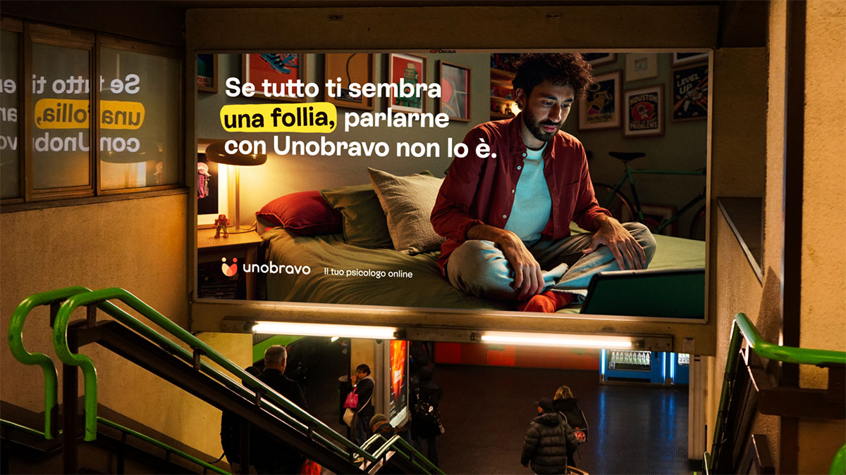 «Con questa attivazione, abbiamo voluto portare il nostro messaggio in un luogo dove la vita non si ferma mai, proprio per ricordare alle persone che fermarsi è possibile. Come già nel nostro precedente OOH estivo sui tram, la città torna a essere protagonista. Cadorna è il simbolo della corsa quotidiana, e trasformarla in un momento di riflessione ci è sembrato il modo più potente per mostrare cosa rappresenta Unobravo» commenta Maxim Fernandez, head of brand di Unobravo.