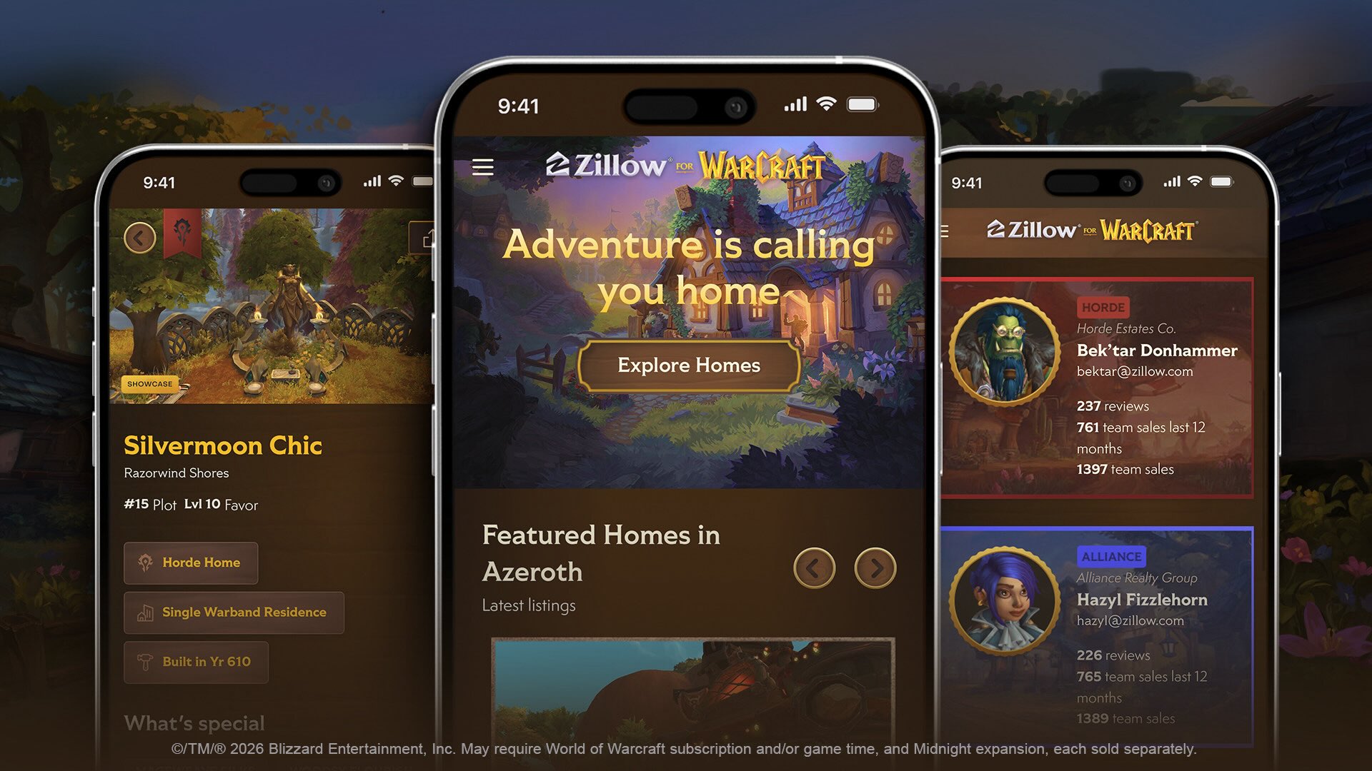 L’operazione è stata pensata dopo che nel gioco è stata introdotta la possibilità di costruire case per i propri personaggi. Come parte della collaborazione, i giocatori di World of Warcraft potranno sbloccare oggetti in-game, tra cui uno zerbino targato Zillow.