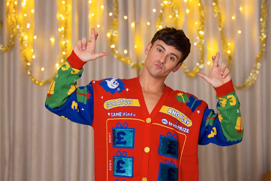 Allwyn, l’operatore della Lotteria Nazionale del Regno Unito, ha scelto come testimonial per la sua campagna natalizia l’ex tuffatore olimpico Tom Daley, vestito con un improbabilissimo cardigan che funge anche da “gratta e vinci”.