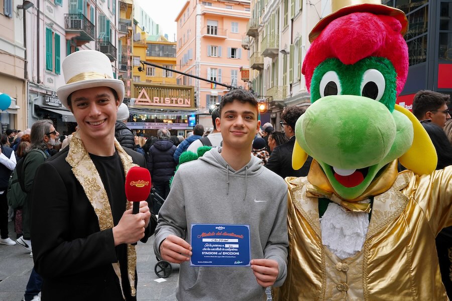 A presentare la colonna sonora del parco è stato Prezzemolo, la mascotte simbolo di Gardaland, che ha coinvolto decine di persone fra le strade sanremesi e fuori dal Teatro Ariston.