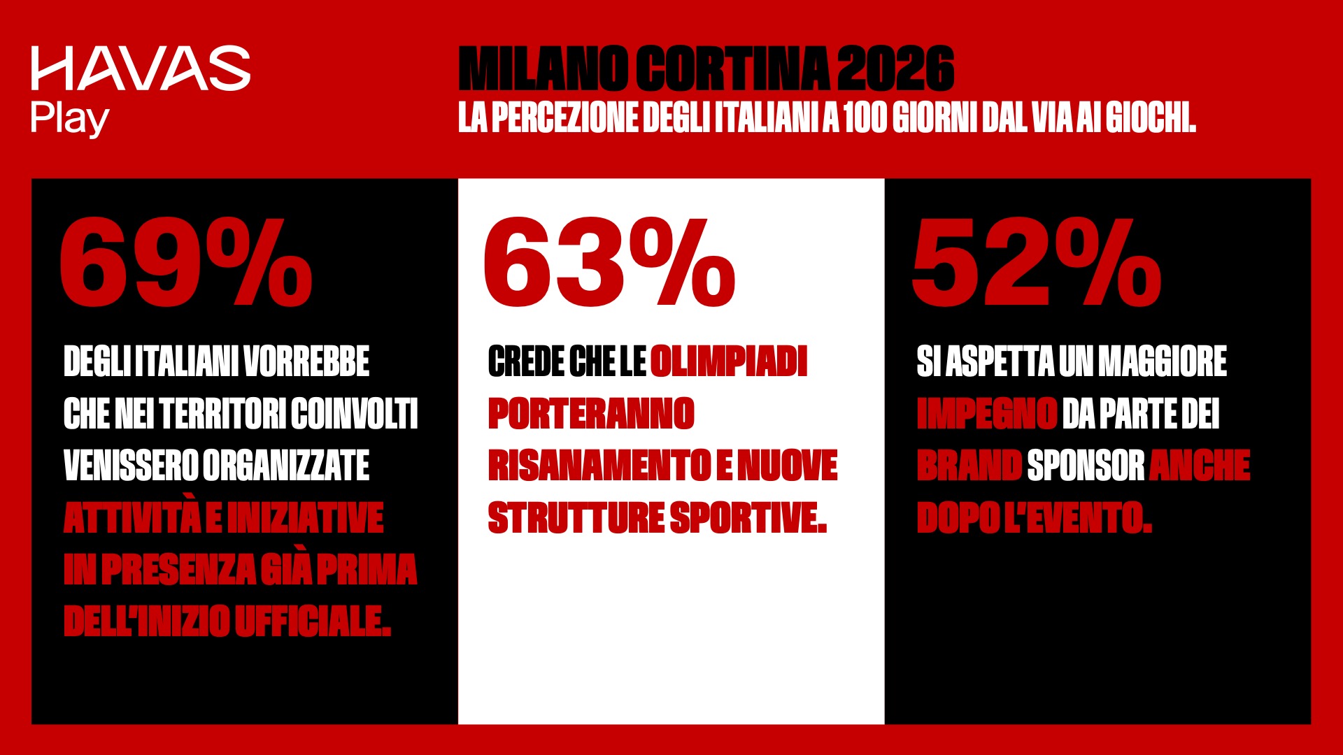 La sfida dell’ingaggio è sottolineata da Guido Surci, Managing Director di Havas Play, per il quale i partner olimpici dovranno “andare oltre la visibilità per costruire esperienze che lascino un segno, restituendo valore sociale e culturale ai territori. È questo il significato più autentico di ‘meaningful engagement’: attivare emozioni reali e durature”.