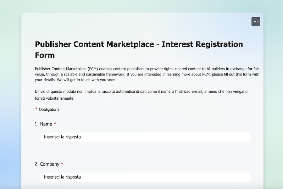 Denominato Publisher Content Marketplace (PCM), intende raccogliere editori di contenuti per metterli in contatto con sviluppatori di IA
