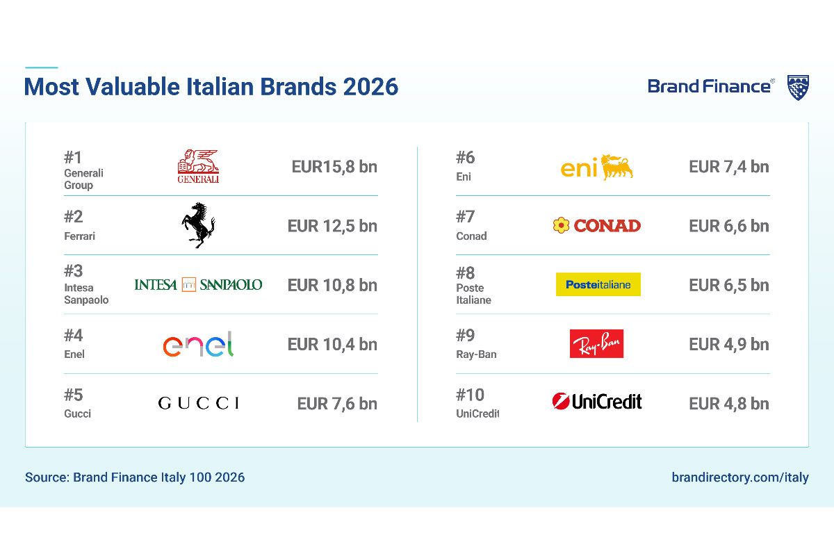 Generali, Ferrari e Intesa Sanpaolo i brand italiani che valgono di più secondo Brand Finance ultima modifica: 2026-04-14T10:39:34+02:00 da Redazione