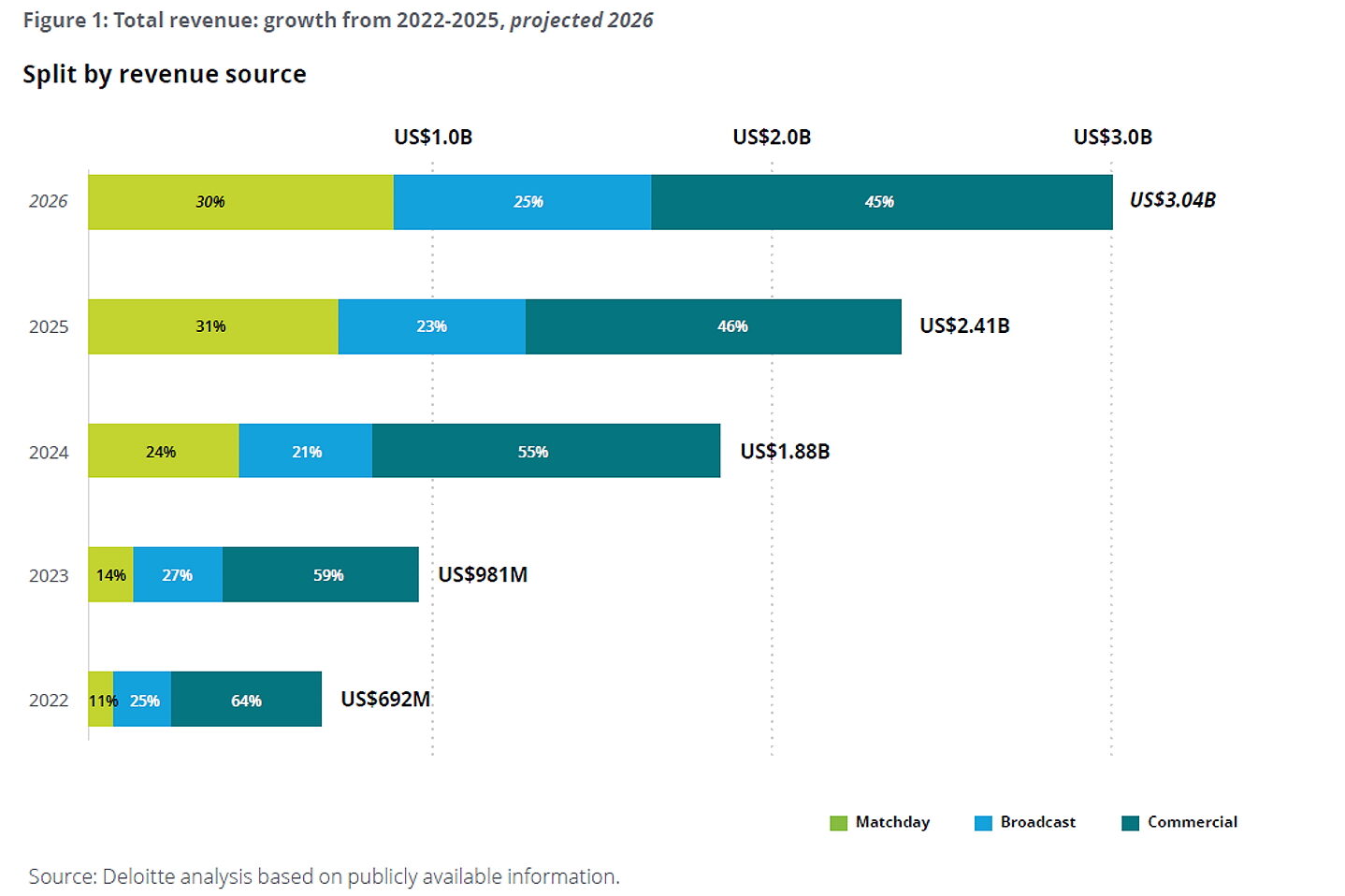 I ricavi dello sport d’élite femminile arriveranno a quota 3 miliardi di $ nel 2026 secondo Deloitte