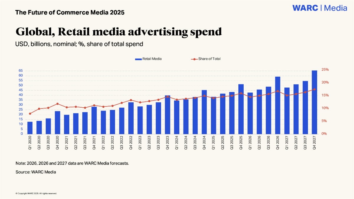 Per Warc i ricavi pubblicitari del retail media nel 2025 toccano i 175 miliardi di $, ma la corsa sta rallentando