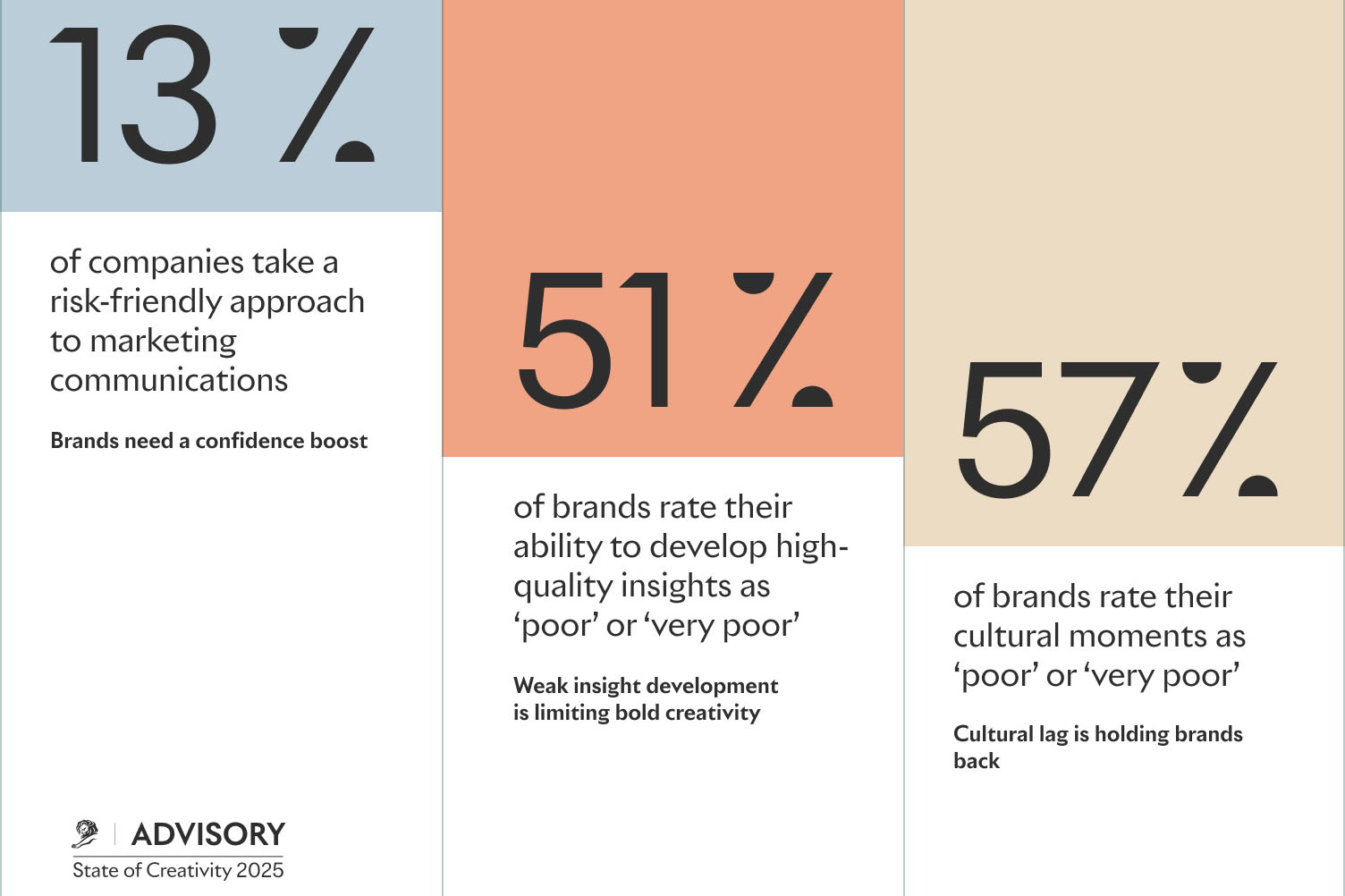 Solo il 13% delle aziende si dice disposta a prendere qualche rischio in fatto di creatività e oltre metà dei marchi non sa come reagire ai temi che dominano le conversazioni