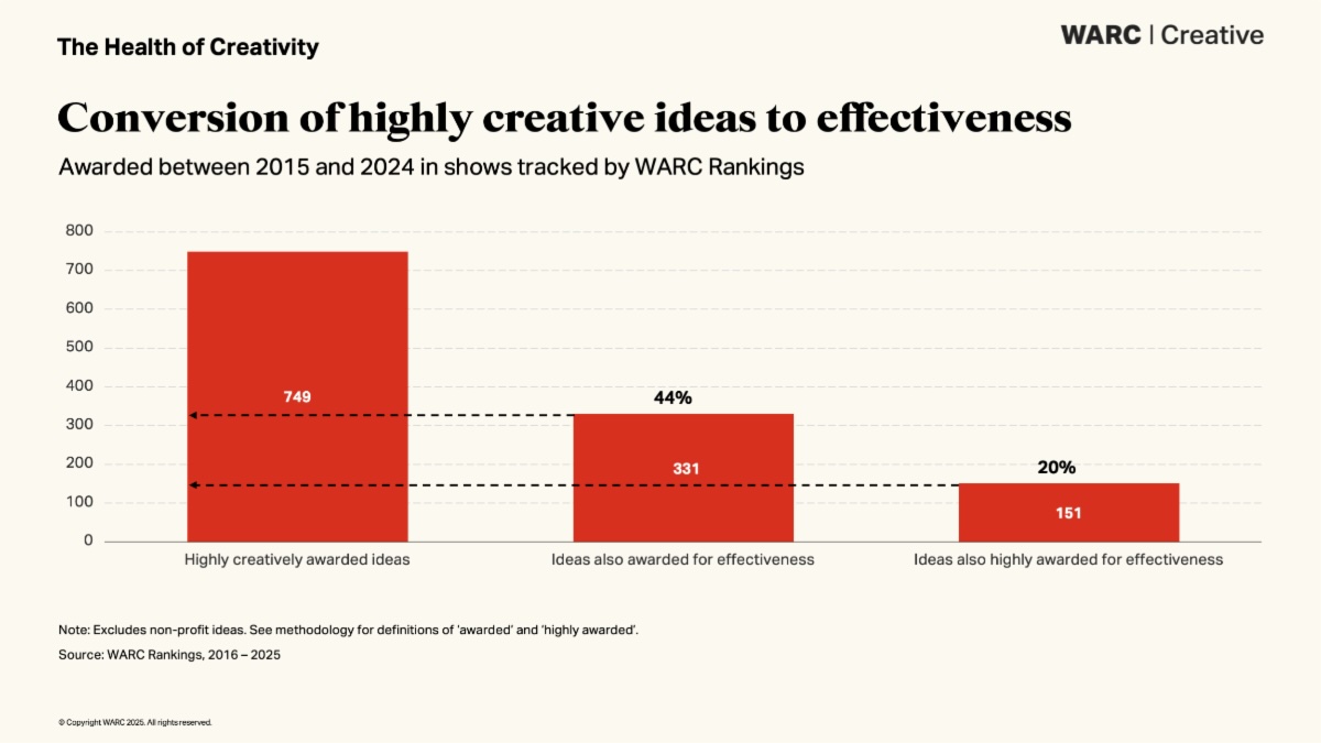 La creatività è una componente fondamentale dei risultati di comunicazione e la TV non è più il mezzo principe delle grandi idee. Sono alcune delle evidenze contenute nel report ‘The Health of Creativity 2025’ in cui Warc ha riassunto le correlazioni tra creatività ed efficacia.