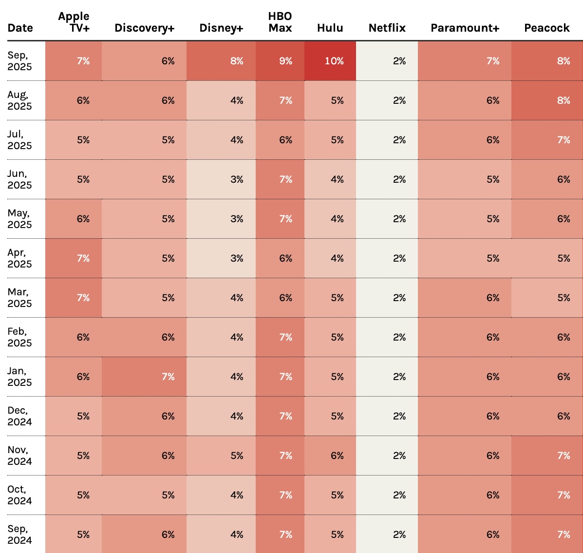 La media dei tassi d’abbandono, in capo a un anno, si aggira tra il 3-4% per Disney+ e sul 4-5% per Hulu. Nello stesso periodo, i tassi di abbandono di altri servizi streaming sono riposti stabili sulle medie annuali, pari a 6-8% per Peakok, 5-7% per Paramount+ e 6-9% per HBO Max.