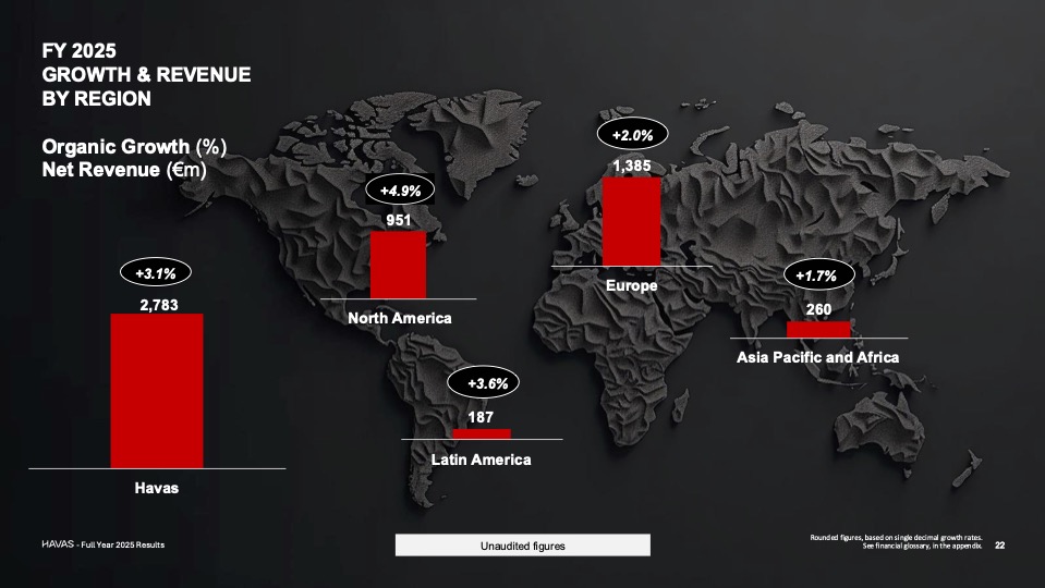 Havas raggiunge l’obiettivo del 2025 con ricavi netti di 2,8 miliardi di euro e una crescita organica del 3,1%
