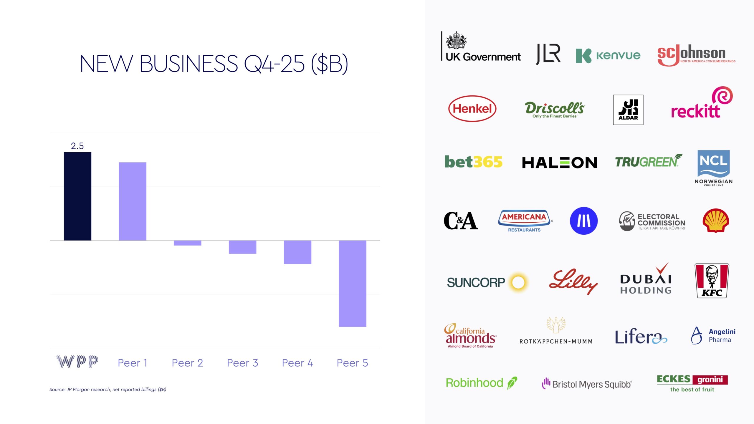 WPP ha annunciato i risultati preliminari del 2025 con ricavi in calo dell’8,1% (-3,6% su base comparabile) a 13,55 miliardi di sterline contro i 14,74 dell’anno precedente, con un fatturato al netto dei costi pass-through di 10,76 miliardi, in calo del 10,4% (-5,4% su base comparabile). I profitti operativi sull’intero anno ammontano a 382 milioni di sterile, in calo del 71,2%, mentre l’utile operativo è stato di 1,3 miliardi di sterline, con un margine del 13% (contro il 15% del 2024), in calo dell’1,8%. Il margine inferiore riflette il calo dei ricavi al netto dei costi di trasferimento, con maggiori costi di buonuscita che hanno contribuito a un calo di 0,9 punti percentuali su base annua (in particolare in WPP Media), e i continui investimenti in tecnologia e dati, sottolinea il comunicato dei risultati preliminari.