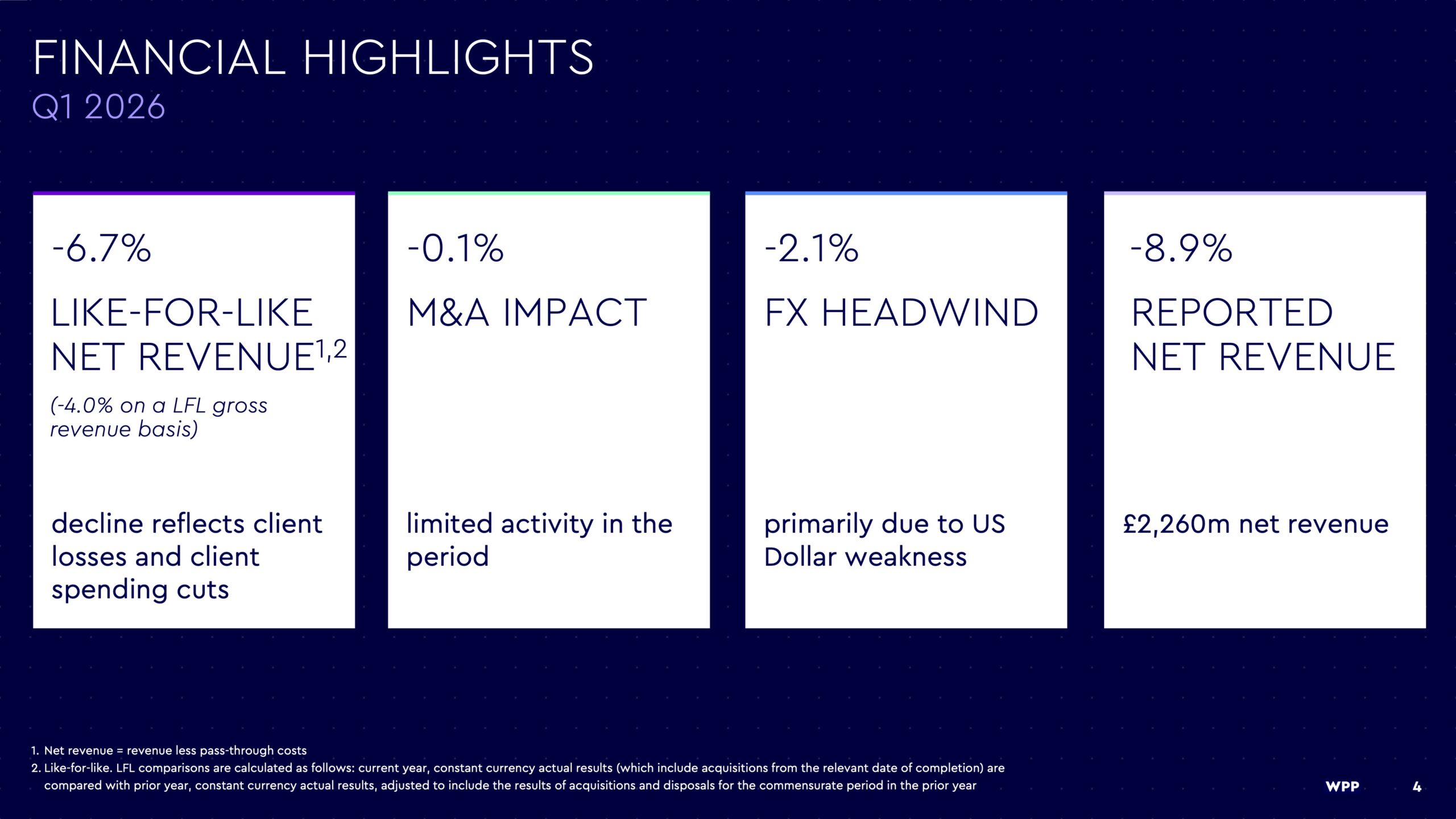 In attesa dello slancio impresso dal piano ‘Elevate28’, i risultati di Wpp relativi al primo trimestre 2026 restano in territorio negativo.