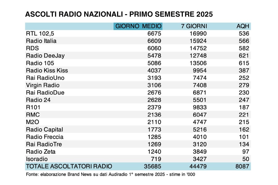 Il JIC Audiradio ha pubblicato i dati del primo semestre 2025, frutto di una ricerca rinnovata. In futuro la Total Audience raccoglierà sia dell’ascolto in diretta che dell’ascolto on-demand
